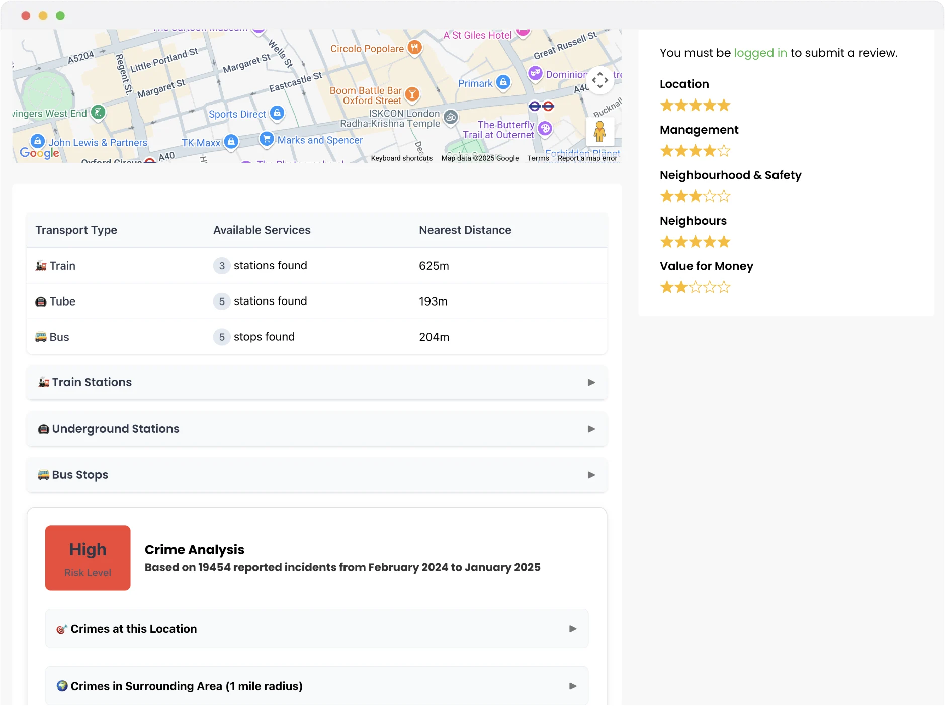We look at crimes reported at the location as well as in the wider area. So figure out if it really is a ‘lovely area’.